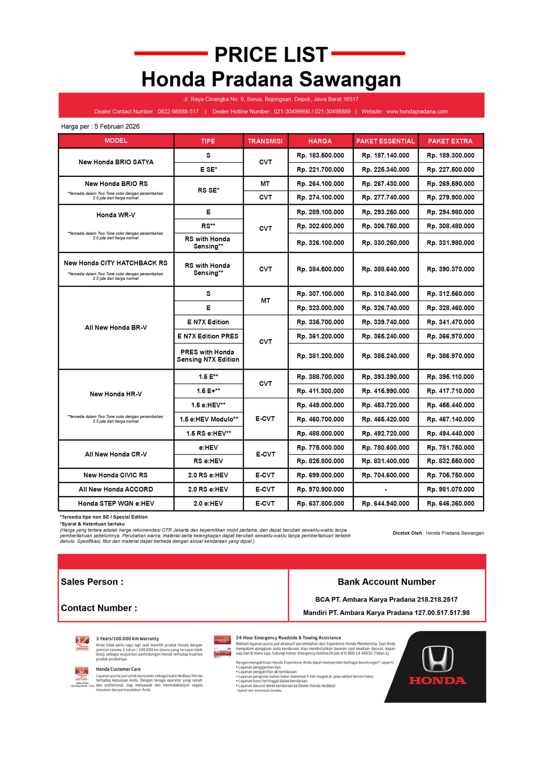 Pricelist Honda Terbaru